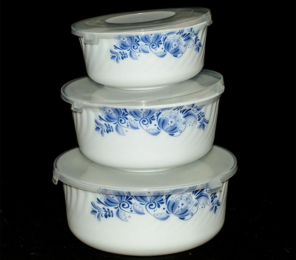Набор салатников с крышками 3шт. стеклокерамика 0,55/0,95/1,35л. XMW-3T YF17036