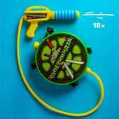Водный пистолет Суперниндзя игрушечное оружие с удобным держателем. Он оснащён резервуаром-рюкзаком для жидкости вместимостью 1,2 литра. Создайте давление помпой, чтобы произвести мощную атаку по всем целям на расстоянии до 10 метров.