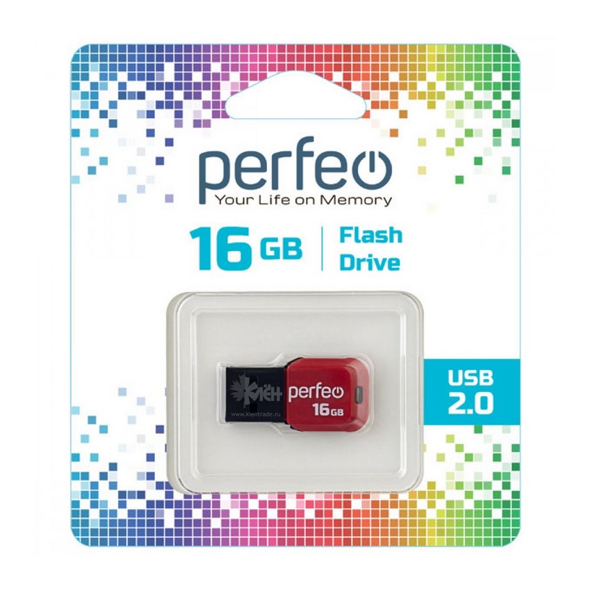 USB накопитель Perfeo, модель M02, серия "Mini", объемом памяти 16GB, чёрно-красного цвета имеет компактный размер.