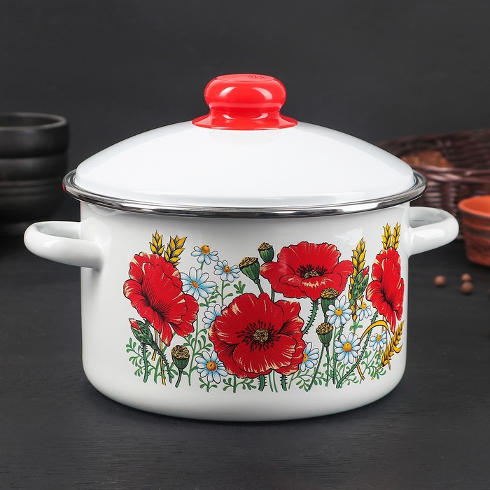 Кастрюля 4,0л. 01-Б1614/4-Маки крас-Г эмаль с рис.