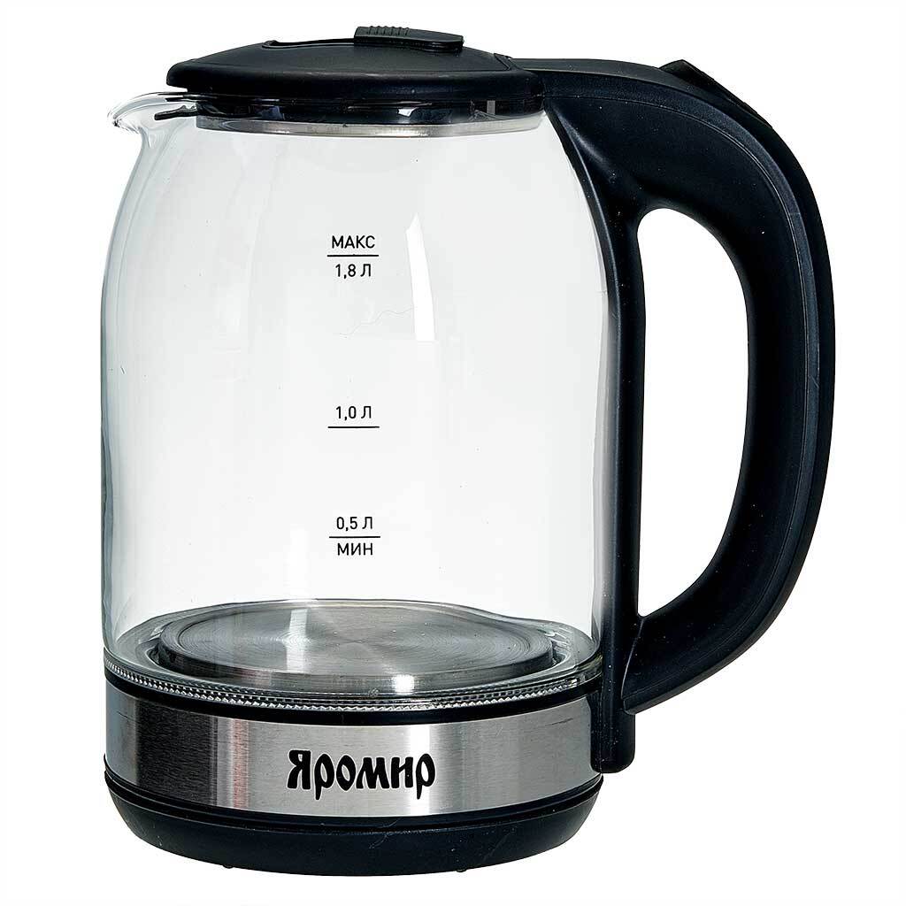 Чайник стеклянный ЯРОМИР ЯР-1061 чёрн.