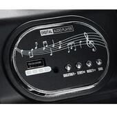 Функции: - движение вперёд, назад, осуществляется при помощи педали газа. - при повороте руля, поворачиваются передние колёса. - машиной можно управлять с пульта. - свет фар. - проигрывает музыкальные мелодии. - сигнал клаксона. - USB-разъём. - AUX.