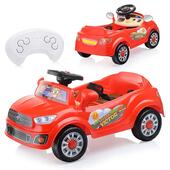 Функции: - движение вперёд, назад, осуществляется при помощи педали газа. - при повороте руля, поворачиваются передние колёса. - машиной можно управлять с пульта. - свет фар. - проигрывает музыкальные мелодии. - сигнал клаксона. - USB-разъём. - AUX.