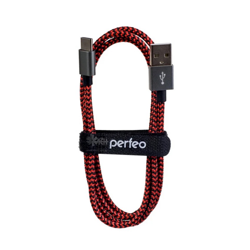 Дата-кабель USB2.0 A вилка - USB Type-C вилка, черно-красный, длина 1 м. (U4901) PERFEO