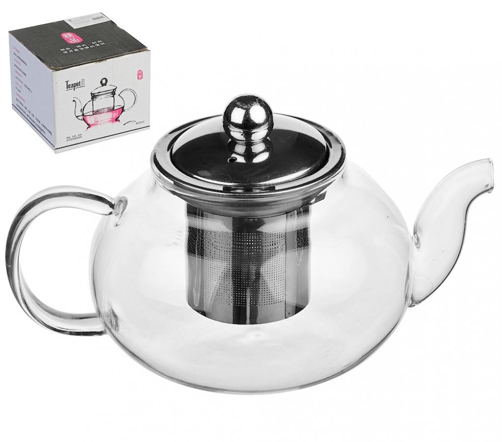 Чайник заварочный 0,4л. 91559 стекло, фильтр-сеточка, кругл.