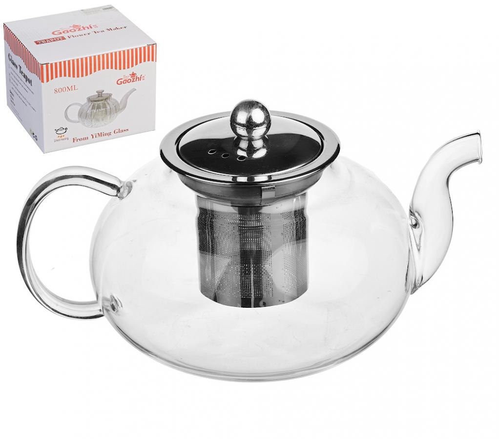 Чайник заварочный 0,8л. 39917 стекло, фильтр-сеточка, кругл.