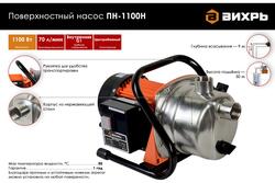 Насос поверхностный Вихрь ПН-1100Н центробеж., 1100Вт., корп.нерж.
