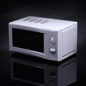Объем внутренней камеры в данной модели составляет 20 литров, а диаметр поворотного стола – 245 мм. Максимальная мощность, на которой работает прибор – 700 Вт, но с помощью ручки можно отрегулировать на меньшую скорость, а также, выбрать режим разморозки.