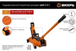 Домкрат гидравлич. подкатной 2т Вихрь ДМК-2 (135-355мм)