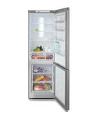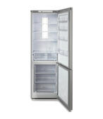 Двухкамерный холодильник Бирюса C860NF выполнен в цвете "серебристый металлопласт". Морозильник расположен в нижней части.