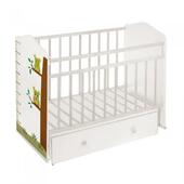 Кроватка детская Морозко "Совы" кол.+кач., фигурн.спинка, поперечн.маят., ящик, белый
