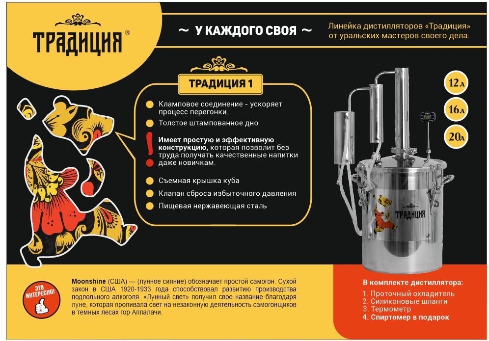 Самогонный аппарат Первач-Традиция 1 17л ароматизатор