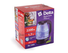 Электрочайник DELTA LUX DL-1203 удобное устройство для ежедневного пользования, которое обладает мощностью 2200 Вт. Это позволяет ему доводить воду до состояния кипения за считанные минуты, экономя ваше время.