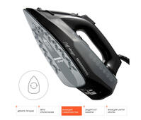 Функция парового удара предназначена для разглаживания плотных, сильно измятых и пересушенных тканей. В момент ее активации пар с силой 140 г/мин проникает в волокна ткани, и расправляет их перед последующим окончательным разглаживанием. Функция доступна как при обычном глажении на доске, так и при использовании вертикального отпаривания.