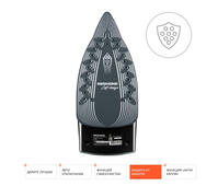 На подошву прибора нанесено суперпрочное керамическое покрытие улучшенного скольжения. Керамика равномерно прогревается и хорошо проводит тепло, плавно скользит по тканям, не оставляя следов или зацепок. С утюгом REDMOND вы расправите самые жесткие складки буквально одним движением!