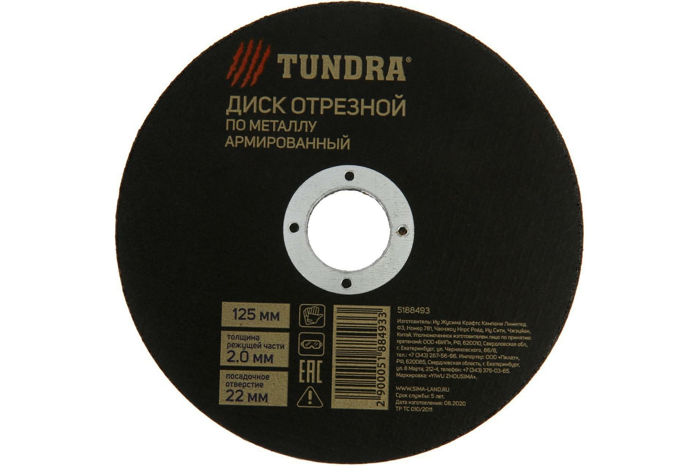 Отрезной круг по металлу 125*2,0*22 ТУНДРА 5188493