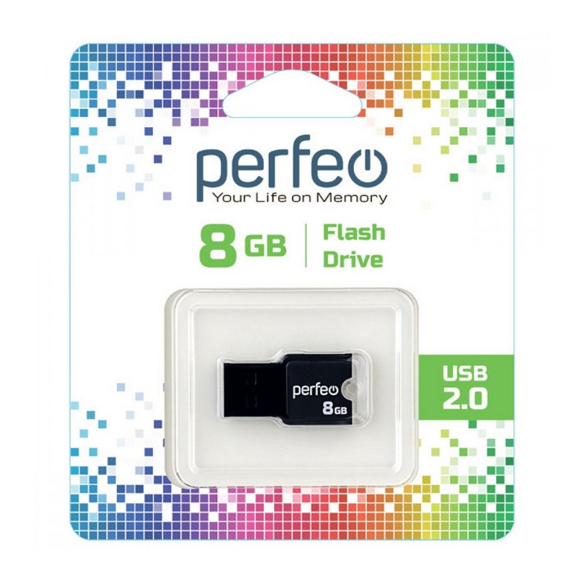 USB накопитель Perfeo M01, серия "Mini" объёмом памяти 8GB, черного цвета имеет компактный размер.