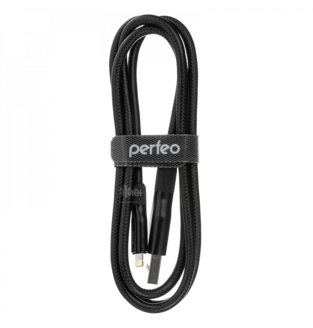 Дата-кабель USB-8pin 1.0м. Perfeo силикон чёрн. (I4318)
