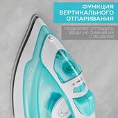 Утюг Scarlett SC-SI30P11, выполненный в мятном цвете, оснащён антипригарной подошвой, которая образует паровую подушку при глажении для дополнительной защиты белья. Уход за ней не составит труда.