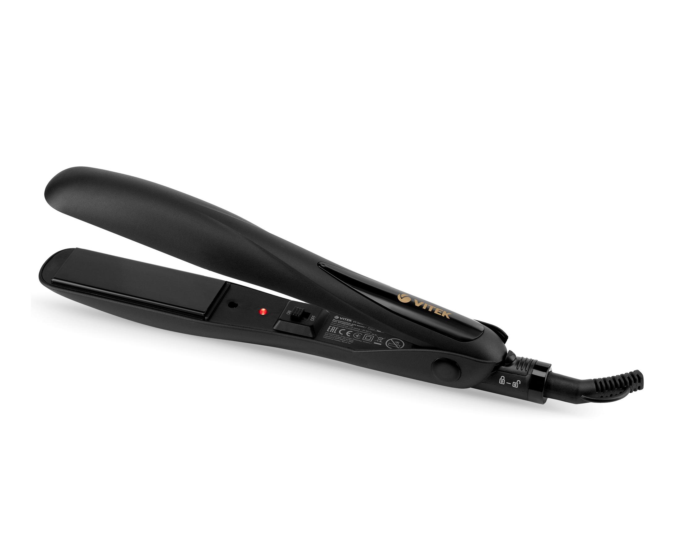 И это еще не все! Выпрямитель VITEK VT-8402 оснащен инновационной технологией PTC Heating, которая позволяет быстро стабилизировать нагрев пластин для более бережного воздействия на волосы. Особое удобство в хранении прибора обеспечивает петелька для подвешивания, а также функция блокировки ручки. Купить выпрямитель для волос можно и для себя, и в подарок близкому человеку.
