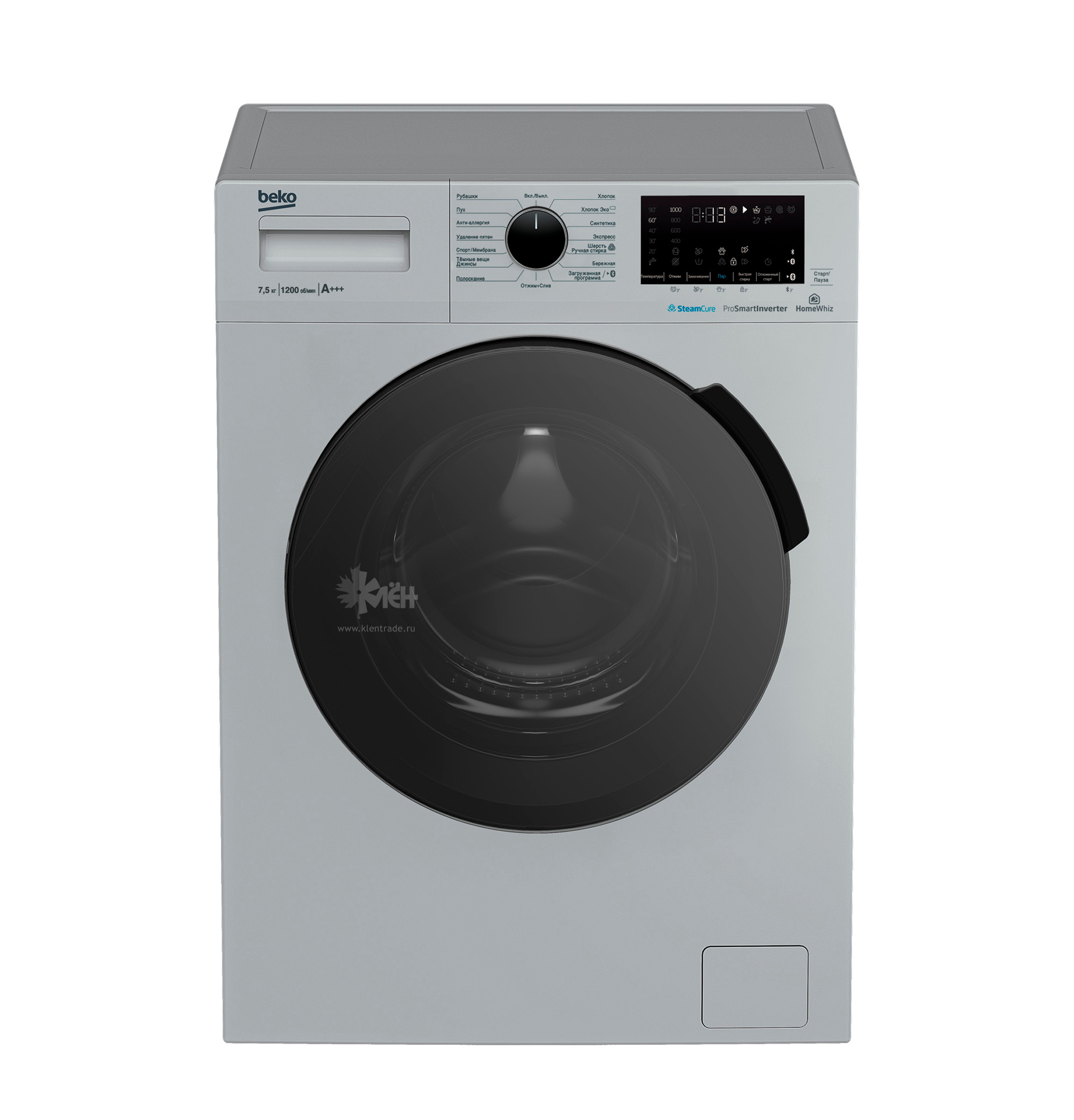 Узкая стиральная машина Beko SteamCure WSPE7H616S серебристого цвета имеет максимальную загрузку барабана 7,5 кг, оснащена инверторным мотором ProSmart и нагревательным элементом Hi-Tech с защитой от накипи.