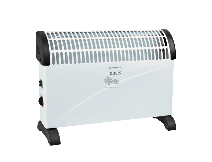 Конвектор Oasis KPO-20 элегантный белый бытовой прибор с устойчивыми ножками для напольной установк. Оборудование действует с мощностью 2000 Вт, позволяющей обслуживать территорию в 25 м. Устройство дополняется термостатом и простым механическим управлением.