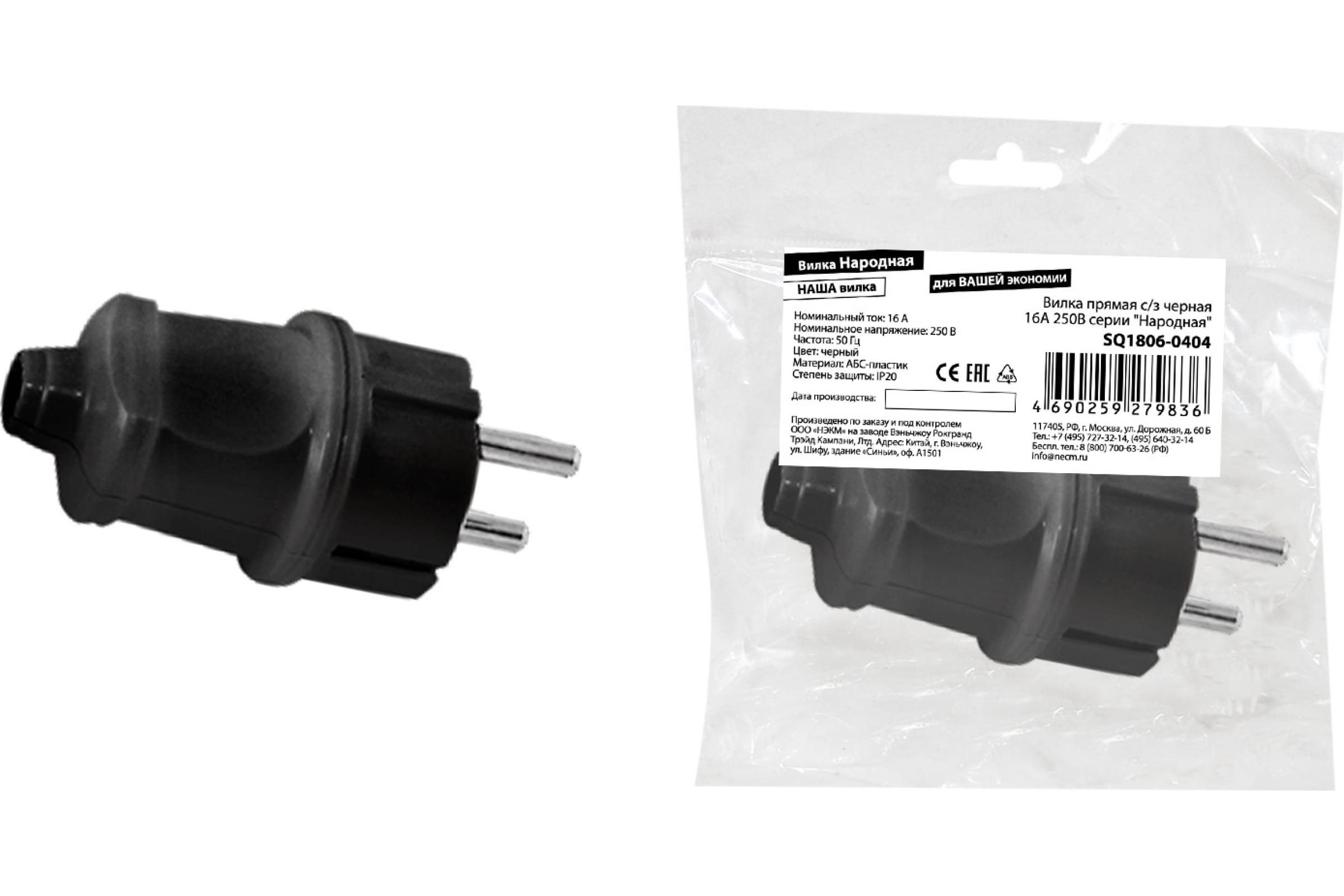 Вилка 16А з/к прямая чёрная /Народная/ TDM SQ1806-0404