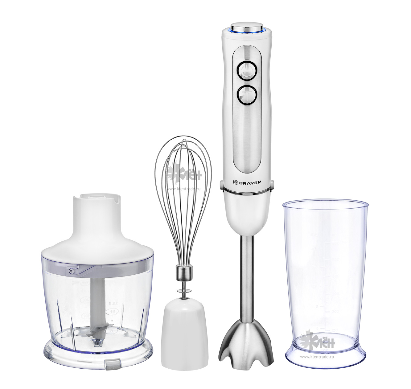 Погружной блендер с мощностью 1000 Вт поможет Вам приготовить разнообразные блюда. У блендера BRAYER BR-1248 5 скоростей, а также есть функция Турборежима, благодаря чему Вы сможете как взбить тесто, так и перемолоть орехи в измельчителе.