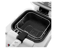 В комплект с фритюрницей идет корзина для фритюра с длинной складной ручкой. В нее поместится до 600 г продуктов. Просто положите продукты в корзину, погрузите в масло и закройте крышку фритюрницы.