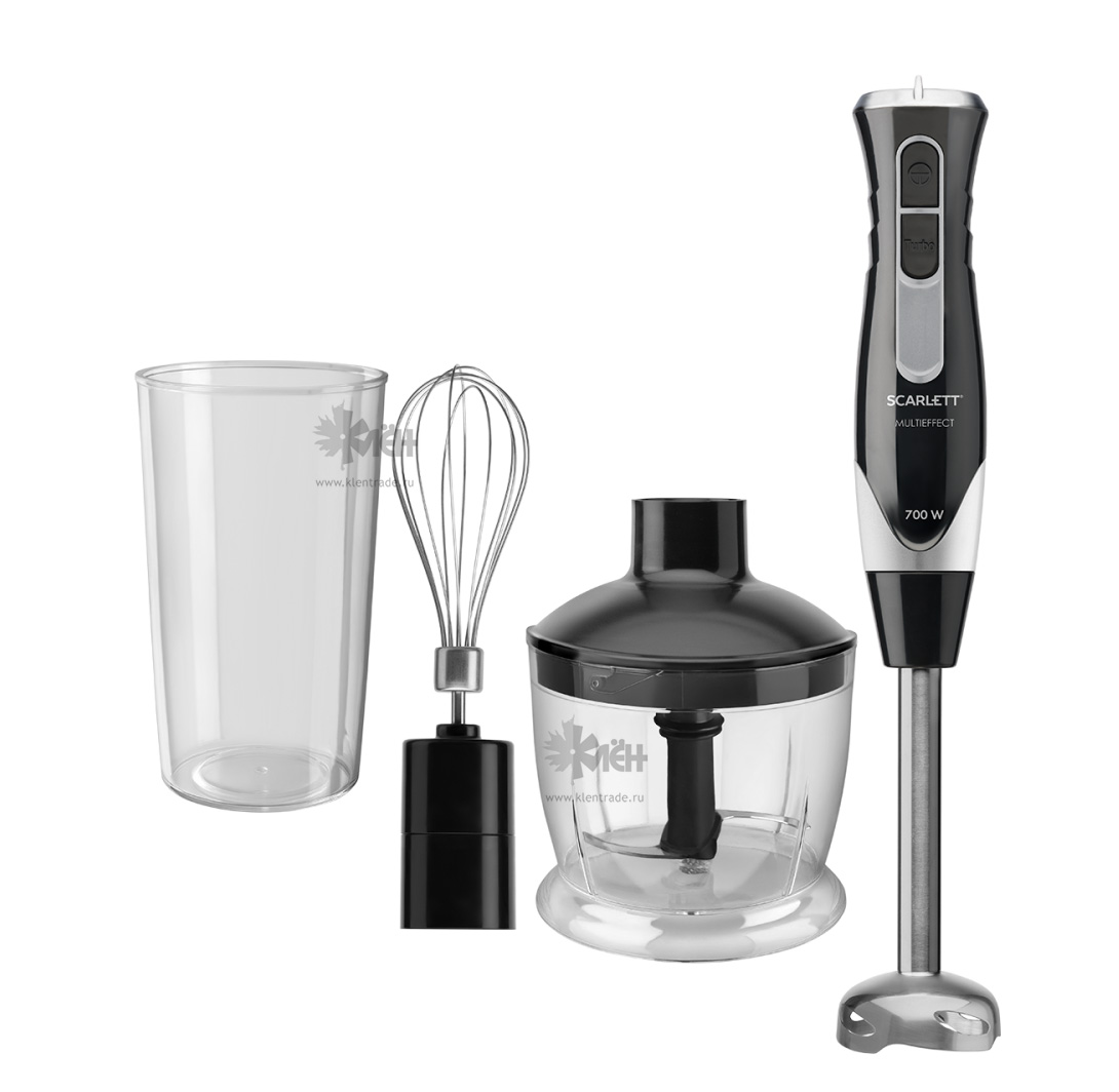 Погружной блендер SCARLETT HB 42F 56 может заменить сразу несколько кухонных приборов. Венчик взобьет сливки, яичные белки, замешает лёгкое тесто для блинчиков. Измельчитель объемом 600 мл быстро переработает овощи в овощную зажарку, измельчит мясо или орехи.