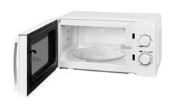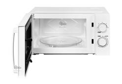 Белоснежный металлический корпус позволит устройству лаконично вписаться в интерьер с любым цветовым решением. За микроволновкой легко ухаживать, так как внутреннее эмалированное покрытие имеет абсолютно гладкую фактуру. Дверь оборудована полупрозрачным окошком и открывается за ручку. Устанавливается изделие на столешницу или другую ровную и устойчивую поверхность.