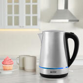 Желаете приобрести надежный и долговечный чайник? Тогда предлагаем вам обратить внимание на модель VITEK VT-7096 объемом 1,7 л. Благодаря сертифицированному английскому контроллеру STRIX чайник прослужит дольше аналогичных. Корпус прибора, имеющий красивую голубую подсветку, изготовлен из нержавеющей стали, которая сохраняет природные свойства воды и исключает размножение бактерий. Крышка открывается автоматически. Прибор имеет шкалу, которая показывает объем воды в чайнике.