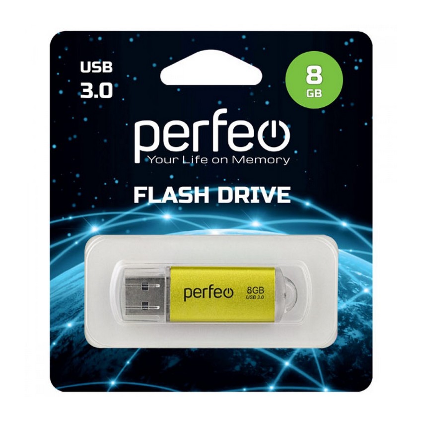 USB 3.0 накопитель 8Gb Perfeo C14 Gold metal series
