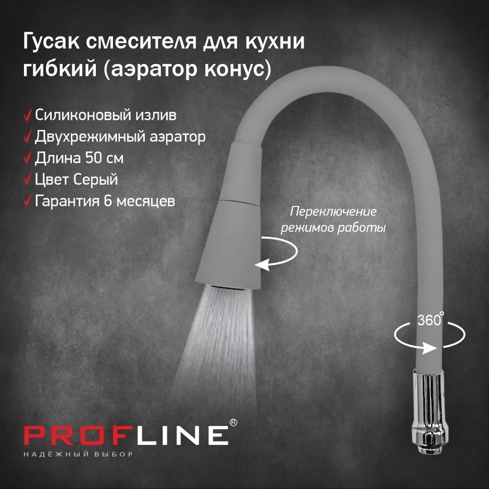 Гусак смесителя для кухни гнущийся , высокий излив PROFLINE 4544 серый аэратор конус