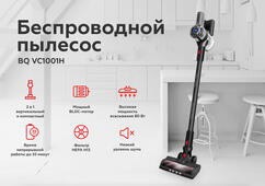 BQ VC1001H оснащен высокопроизводительным BLDC-мотором мощностью 220 Вт c силой всасывания 80 Вт. Благодаря этому пылесос эффективно собирает пыль, мусор и шерсть.