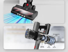 Благодаря поворотной головке вы сможете без труда менять положение щетки для уборки в самых труднодоступных местах, например, в углах комнат или под диваном. А особая LED-подсветка, встроенная в щетку, позволит использовать пылесос даже в условиях низкого освещения.