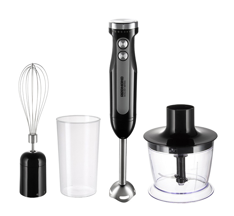 REDMOND RHB-2998 укомплектован тремя съемными насадками, меняя которые вы можете использовать прибор как блендер, миксер и измельчитель.