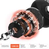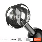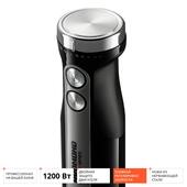 Максимальная мощность блендера - 1200 Вт, и он с легкостью справляется даже с твердыми корнеплодами и жестким мясом. Насадки прибора вращаются со скоростью от 8800 до 13200 об/мин. Вы можете подобрать подходящий режим с помощью удобного переключателя на ручке прибора. Чтобы наиболее тщательно обработать продукты, постепенно увеличивайте количество оборотов. А добиться идеально однородной консистенции крем-супа или смузи поможет режим "Турбо", при котором прибор работает со скоростью 15000 об/мин.