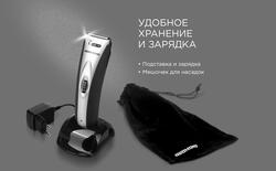 Вы можете пользоваться REDMOND RHC-6200 как с подключением к сети, так и беспроводным способом. Полная зарядка батареи занимает 8 часов, ее емкости хватит на 45 минут работы. Этого достаточно для стрижки головы или полноценного ухода за бородой и усами.
