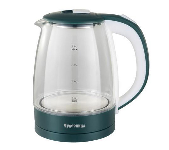 Электрочайник Чудесница ЭЧ-2040 представлен в элегантном зеленом корпусе с прозрачным термостойким стеклом, через которое вы сможете наблюдать процесс кипения воды, а благодаря наличию подсветки выглядит он завораживающе. Вместительность прибора 1.8 л позволяет вскипятить такое количество воды, которого хватит на приготовление горячих напитков для всей семьи или дружной компании. Мощность чайника 1500 Вт.