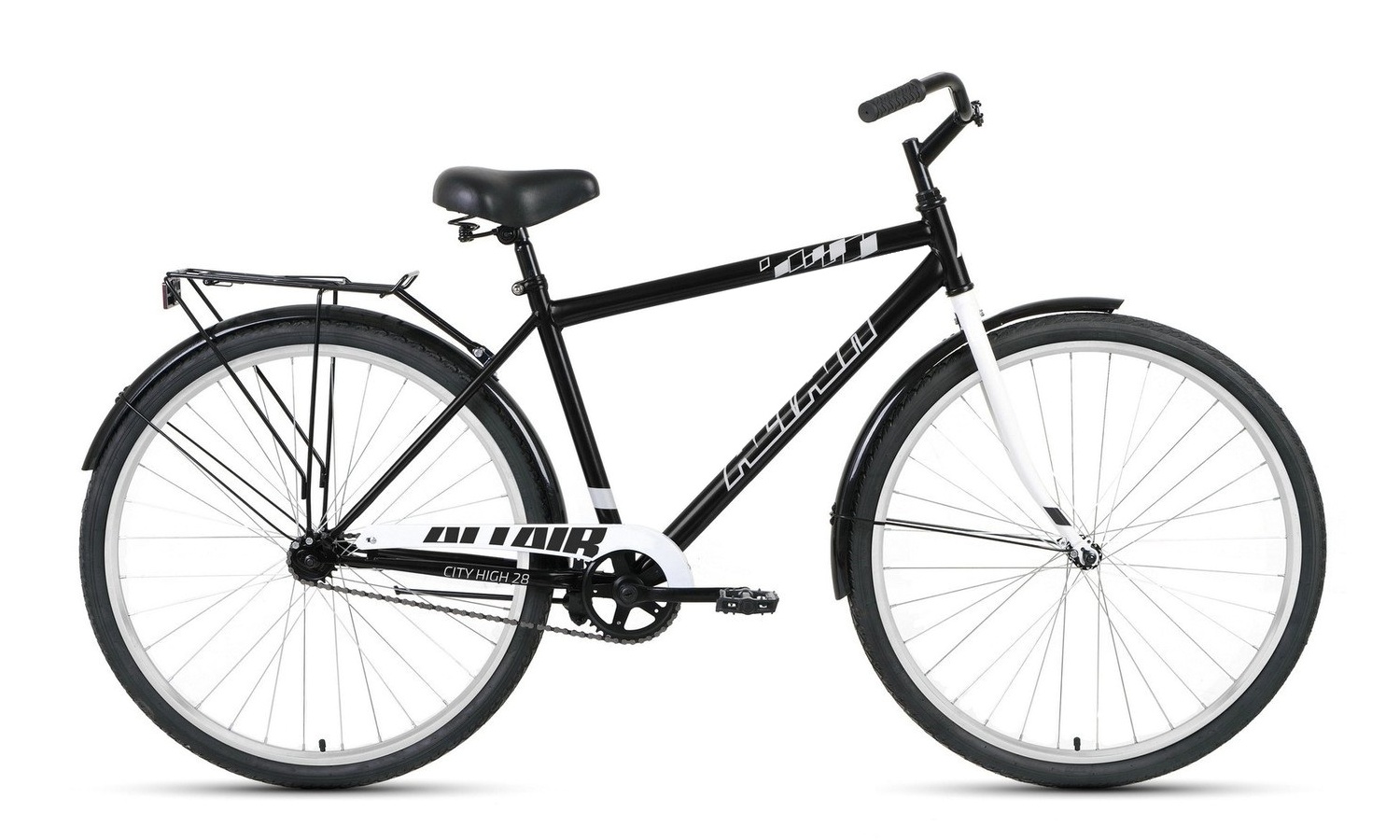Altair - City 28 high – городской прогулочный велосипед. Велосипед собран на стальной раме, которая обладает отличной жесткостью и надежностью в связи с простотой конструкции. Установленная жёсткая вилка отличается длительным эксплуатационным периодом и надёжностью.