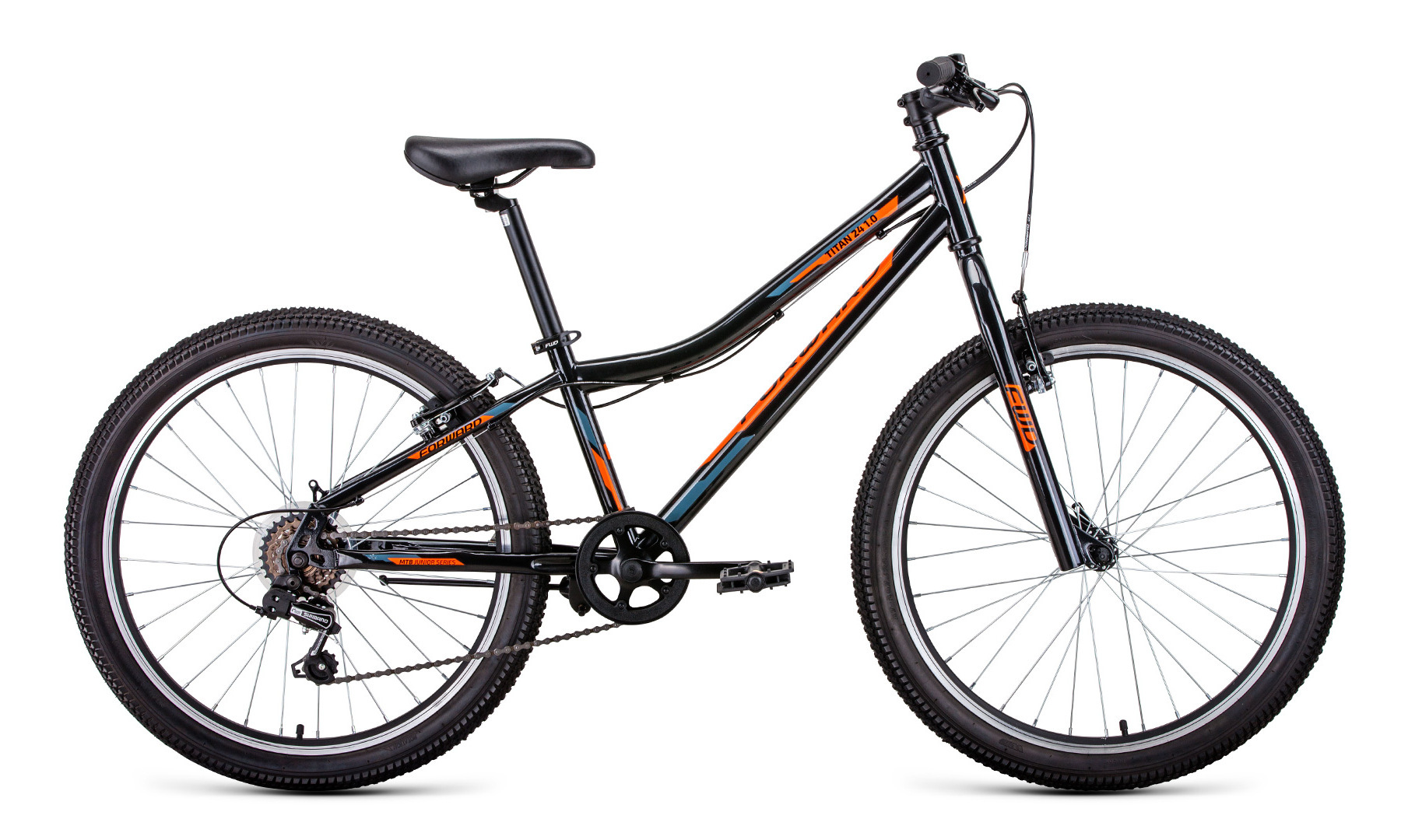 Велосипед 24" FORWARD Titan 1.0 рост 12", 6ск. чёрный/ярко-оранжевый