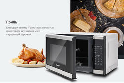 Печь оснащена грилем: в нем вы можете запекать овощи, курицу, рыбу, мясо, делать картофельные чипсы и выпечку.