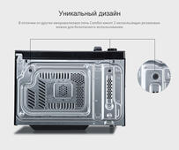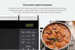 Кроме этого вы можете воспользоваться всем ассортиментом режимов работы СВЧ – например, размораживанием по весу или же по времени, а также запрограммировать поэтапное приготовление (если, например, мясо, нужно сначала разморозить, а потом запечь; либо применить рецепт с сипользованием режимов разной мощности).