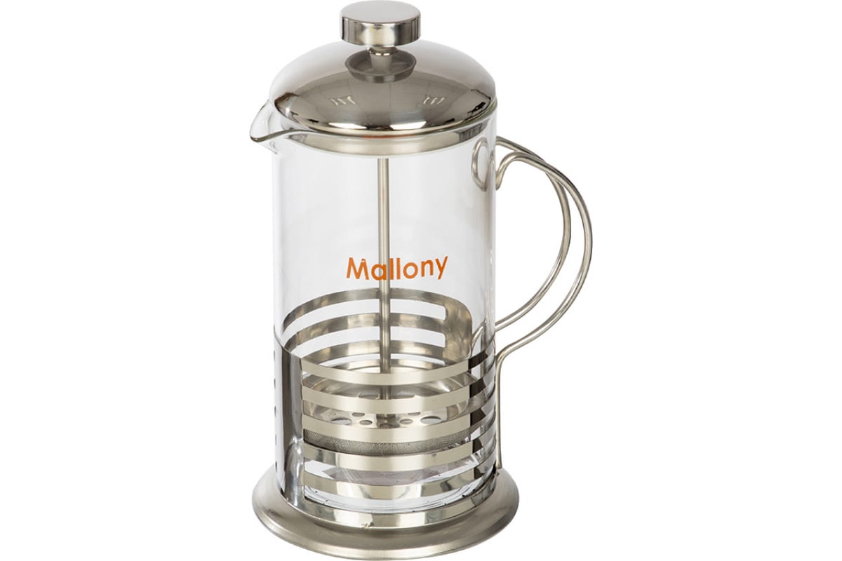 Чайник заварочный френч-пресс 0,6л. Mallony Primo стекло/металл 007222