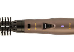 В приборе имеются три насадки: две термощетки диаметром 20 мм и 33 мм и концентратор, направляющий поток воздуха на определенные пряди для получения задуманного вами результата. Зафиксировать готовую прическу можно, включив подачу холодного воздуха.