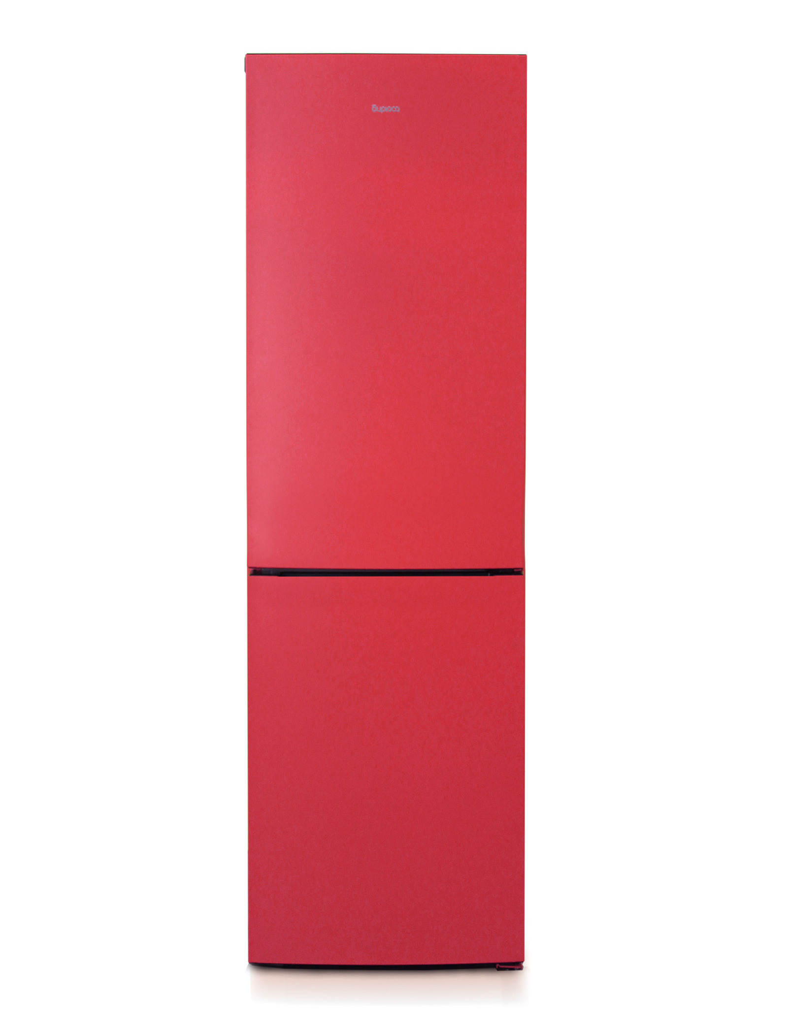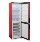 Двухкамерный холодильник Бирюса H6049 выполнен в ярком красном цвете. Морозильник расположен в нижней части.