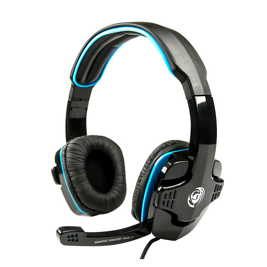 Игровые накладные проводные наушники с микрофоном Dialog HGK-15 выполнены в классическом чёрном цвете с синими вставками.