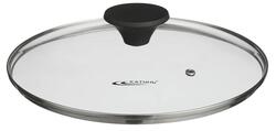 Крышка выполнена из жаропрочного стекла. Подходит для всех типов плит. Можно мыть в посудомоечной машине.