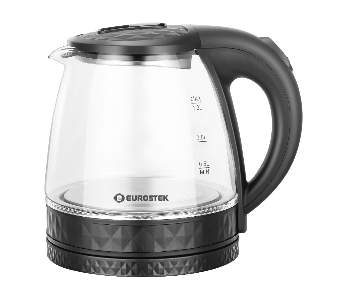 Eurostek EEK-2229 - это современный электрический чайник. Корпус прибора выполнен из качественного термостойкого стекла и термостойкого пластика черной расцветки.